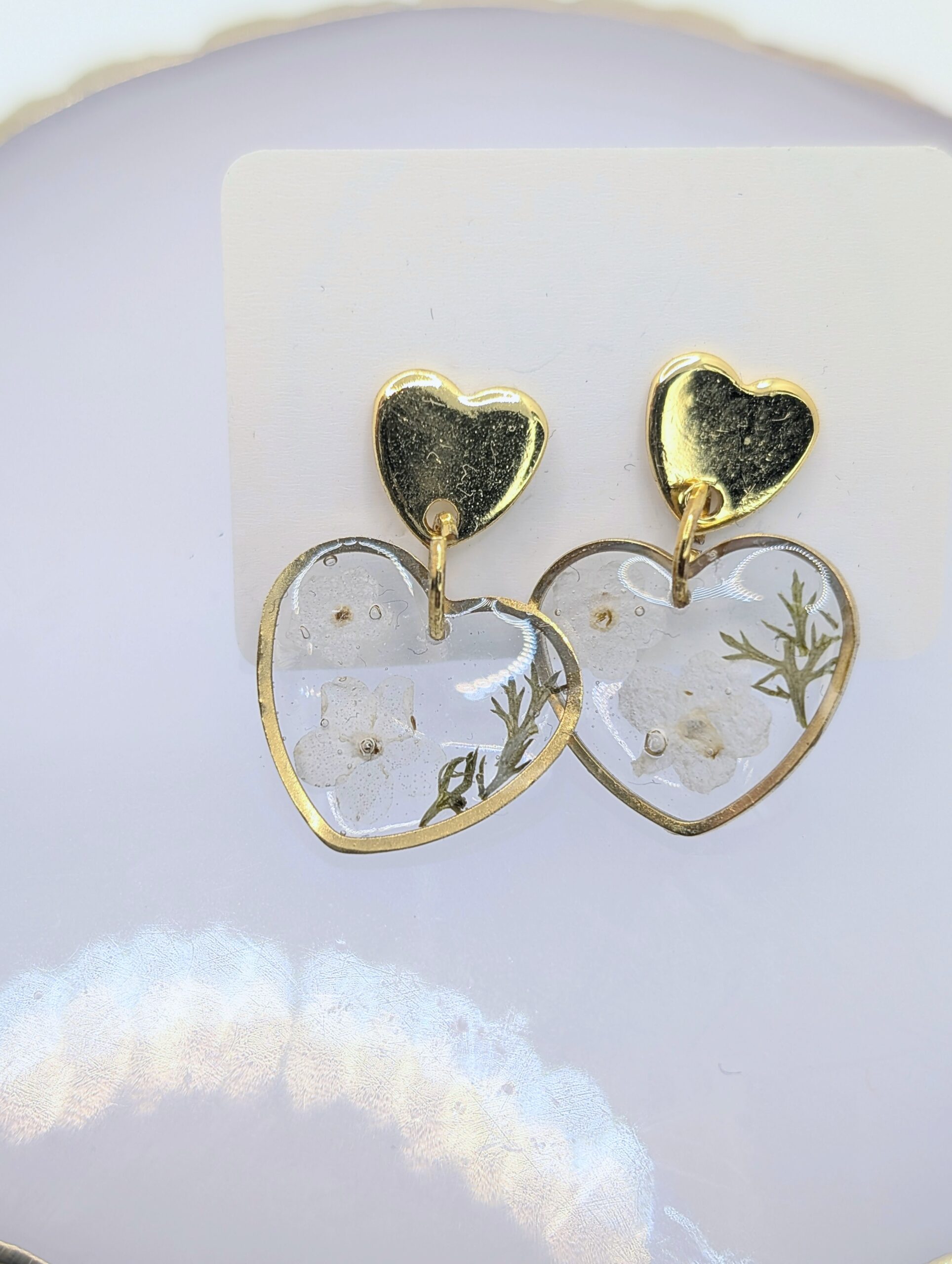 Romantyczne kolczyki z żywicy i białych kwiatów
