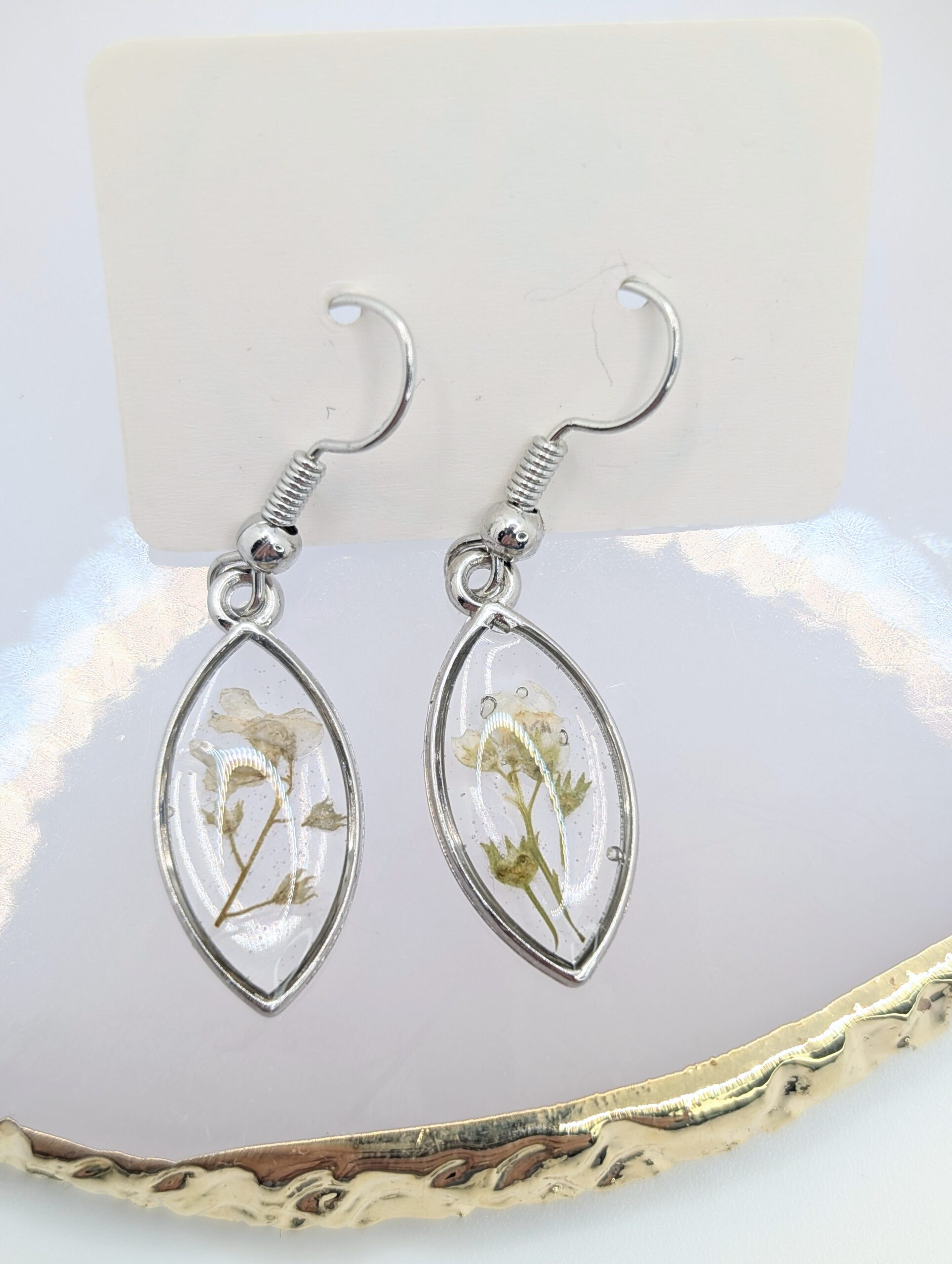 Subtelne kolczyki z żywicy i białych niezapominajek