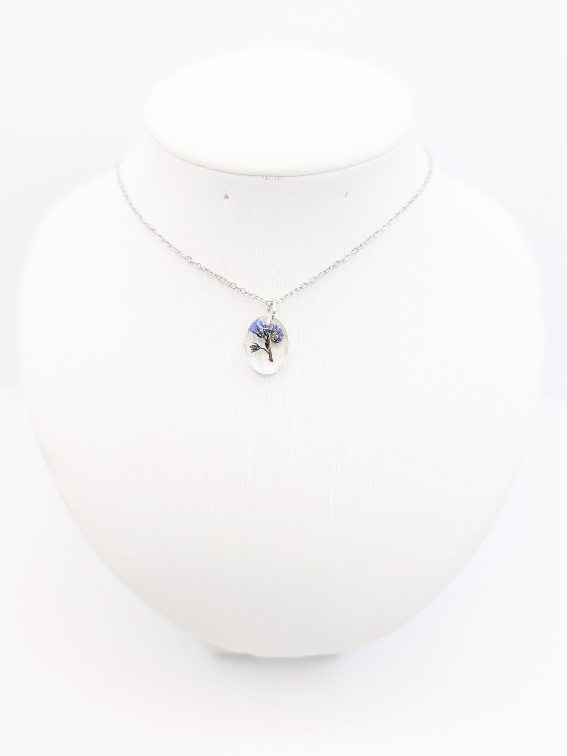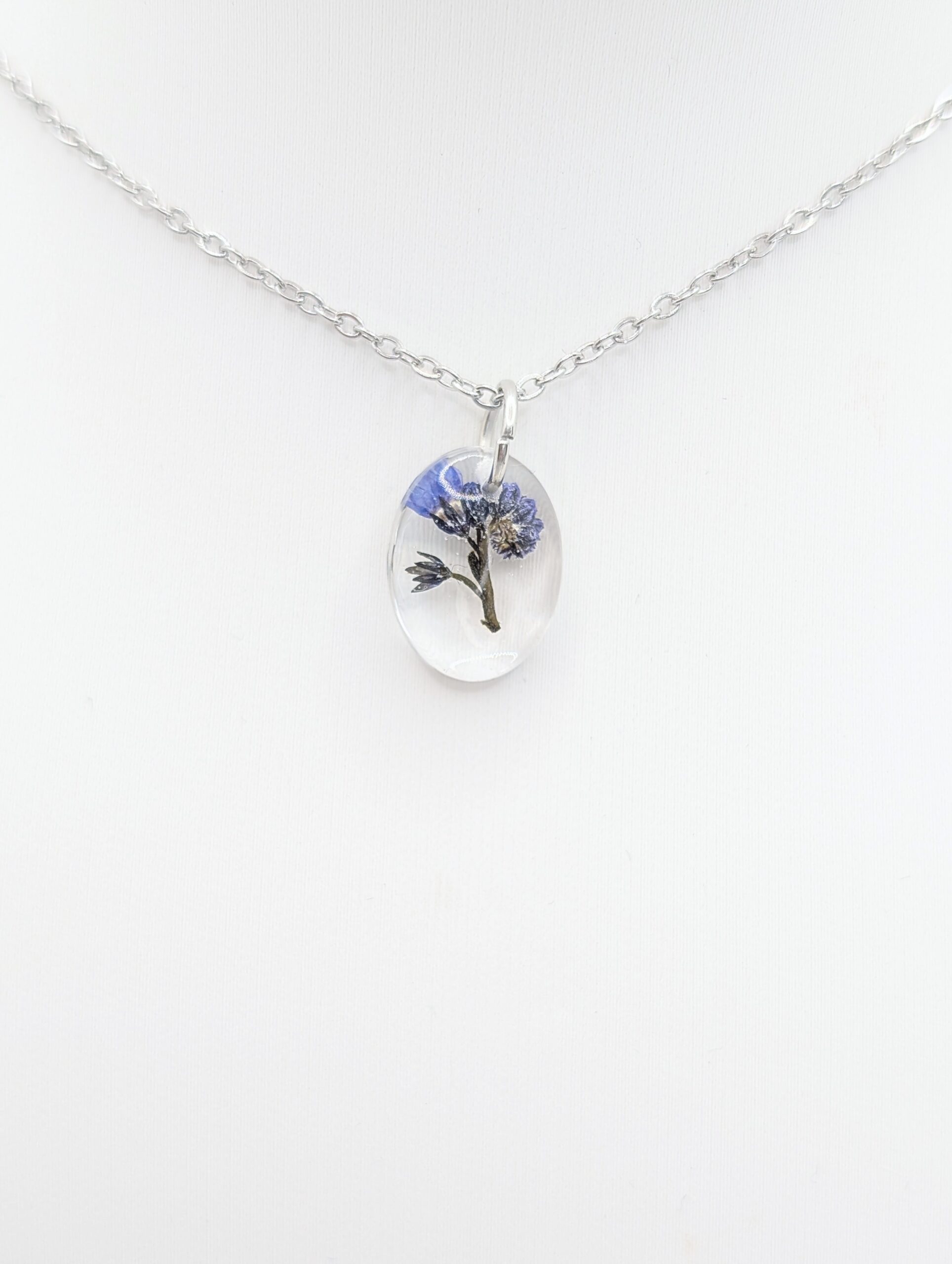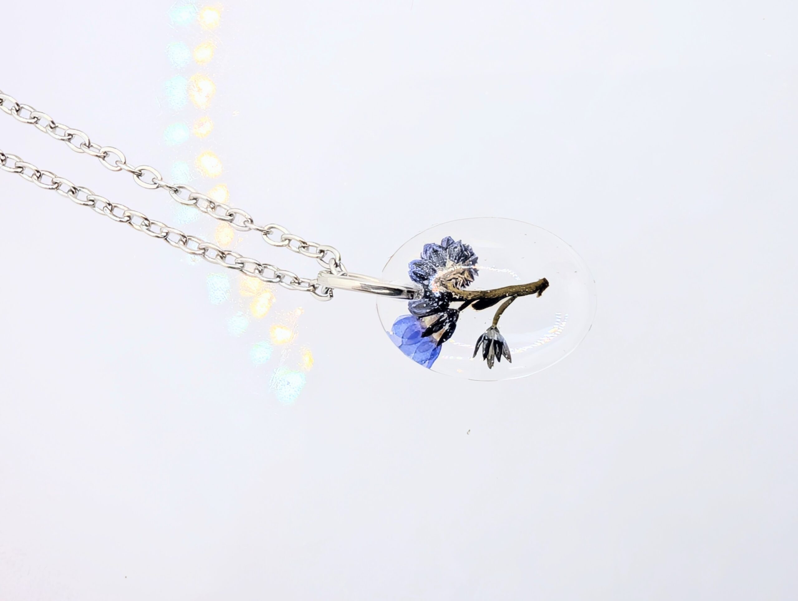 Tworzenie biżuterii botanicznej to proces wymagający ogromnej precyzji, zatem każdemu elementowi poświęcam mnóstwo uwagi. Niezapominajki osobiście zbieram i przygotowuję, aby w konsekwencji móc je zamknąć w trwałej i lśniącej formie. Ten naszyjnik z żywicy szlifuję ręcznie do uzyskania idealnej gładkości, co oznacza, że eliminuję wszelkie niedoskonałości i uzyskuję efekt tafli wody. Zawieszkę połączyłam z subtelnym, srebrnym łańcuszkiem, dzięki czemu biżuteria jest bardzo komfortowa w codziennym noszeniu. Całą pracę realizuję całkowicie samodzielnie, co gwarantuje Ci otrzymanie produktu jedynego w swoim rodzaju.