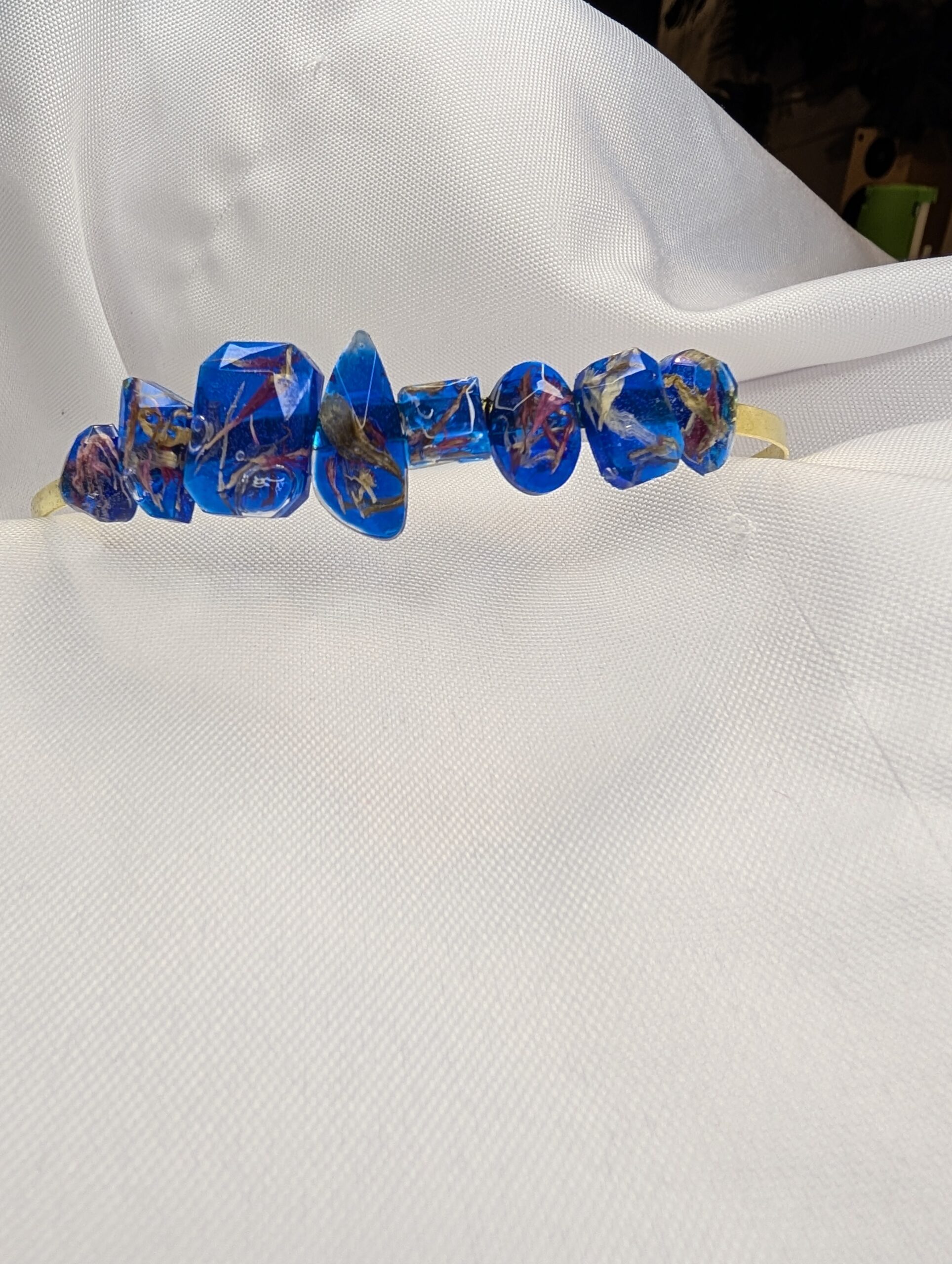 Materiał: Żywica jubilerska (UV), suszone płatki roślin, elastyczna baza.