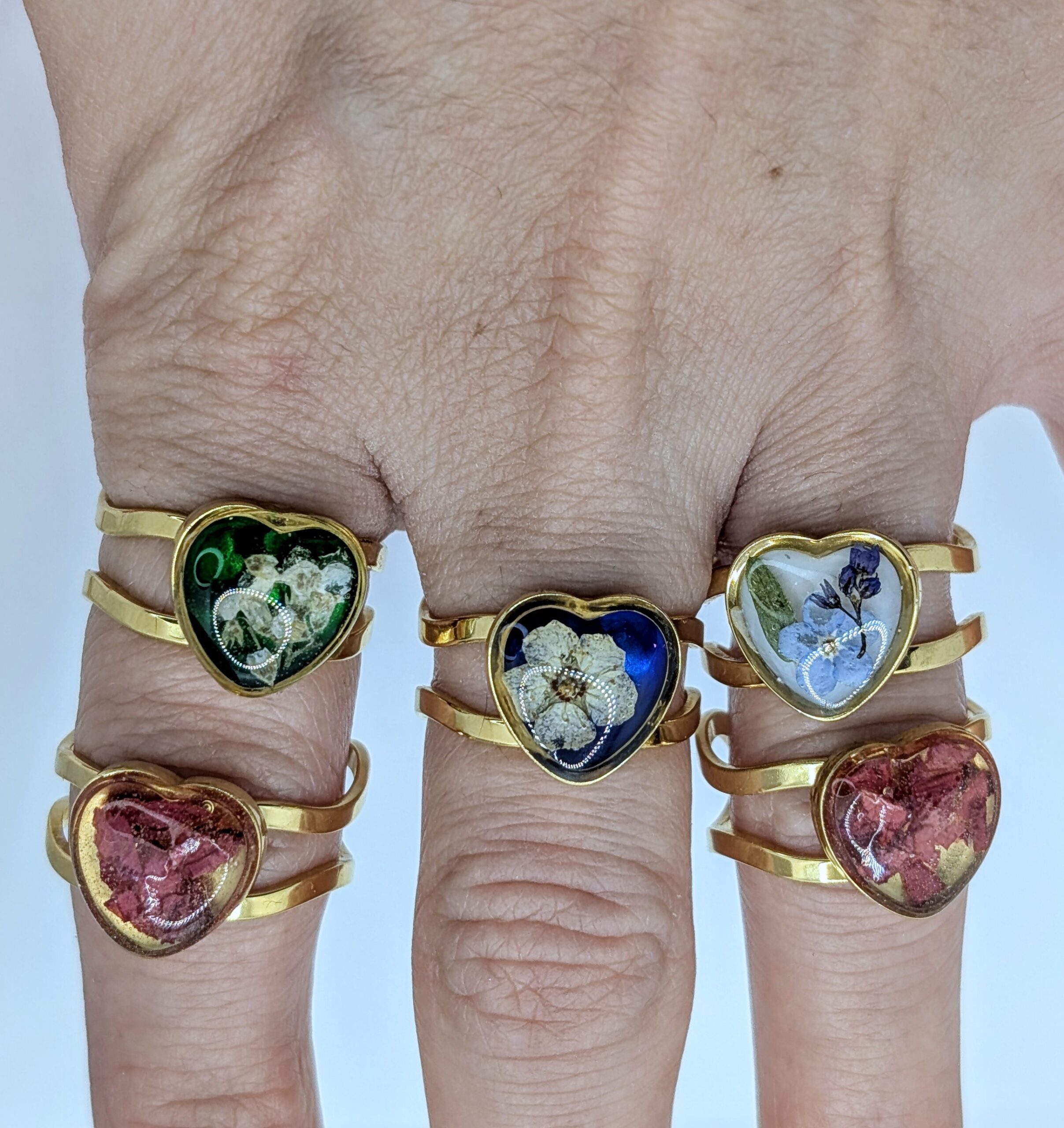 Każdy pierścionek przygotowuję samodzielnie w mojej pracowni, dbając o harmonijne ułożenie roślin. Zatem białe kwiaty tawuły są starannie selekcjonowane, aby idealnie pasowały do drobnej oprawy w formie serca. W konsekwencji otrzymujesz produkt unikatowy oraz dopracowany pod każdym względem. Ten pierścionek z kwiatem to doskonałe połączenie klasycznej elegancji z nowoczesnym stylem botanicznym. Ponadto baza pierścionka wykonana jest ze stali szlachetnej w kolorze złotym. Materiał ten nie czernieje i jest bezpieczny dla delikatnej skóry dłoni. To autorski projekt, który powstał z miłości do natury.