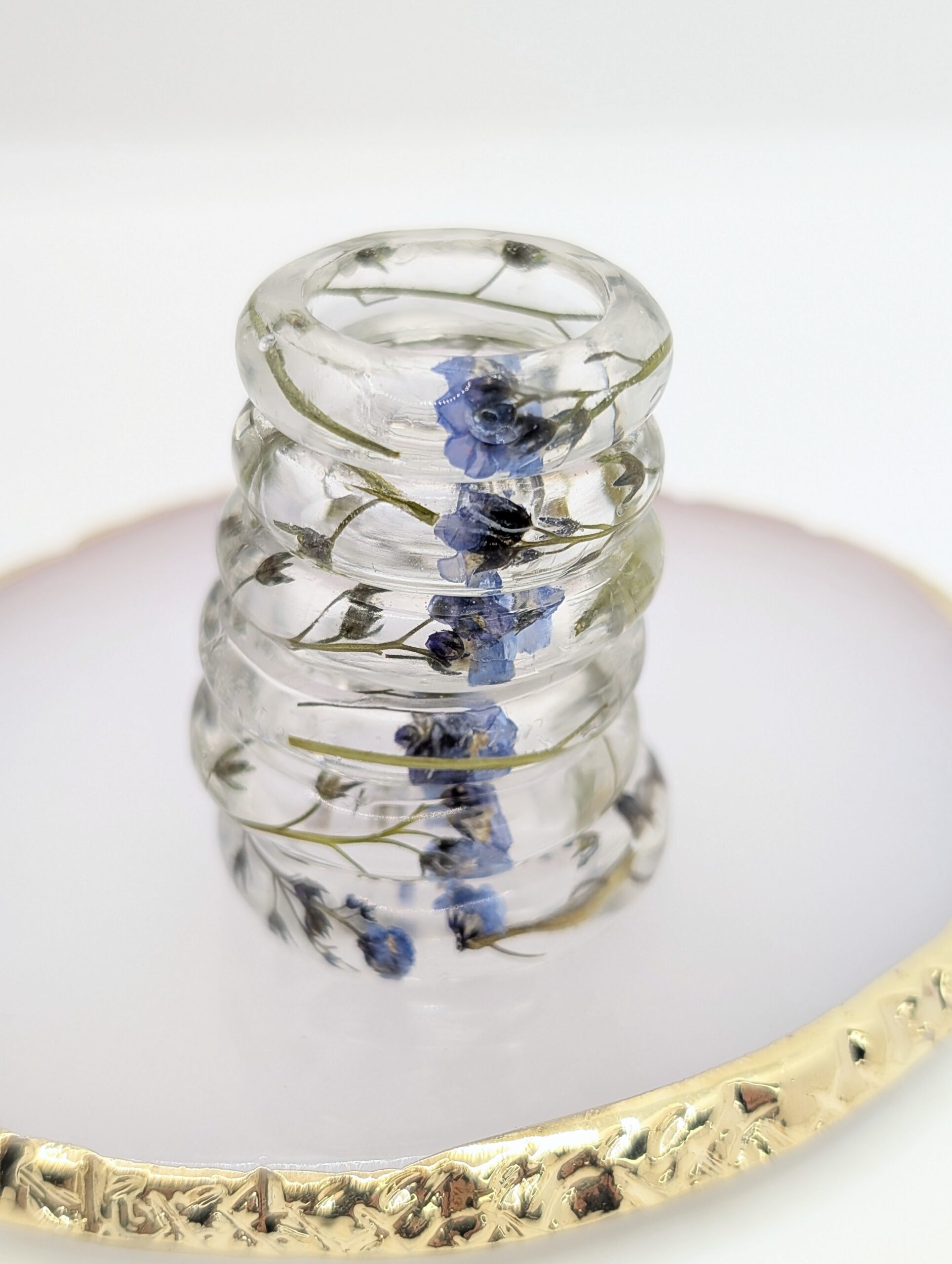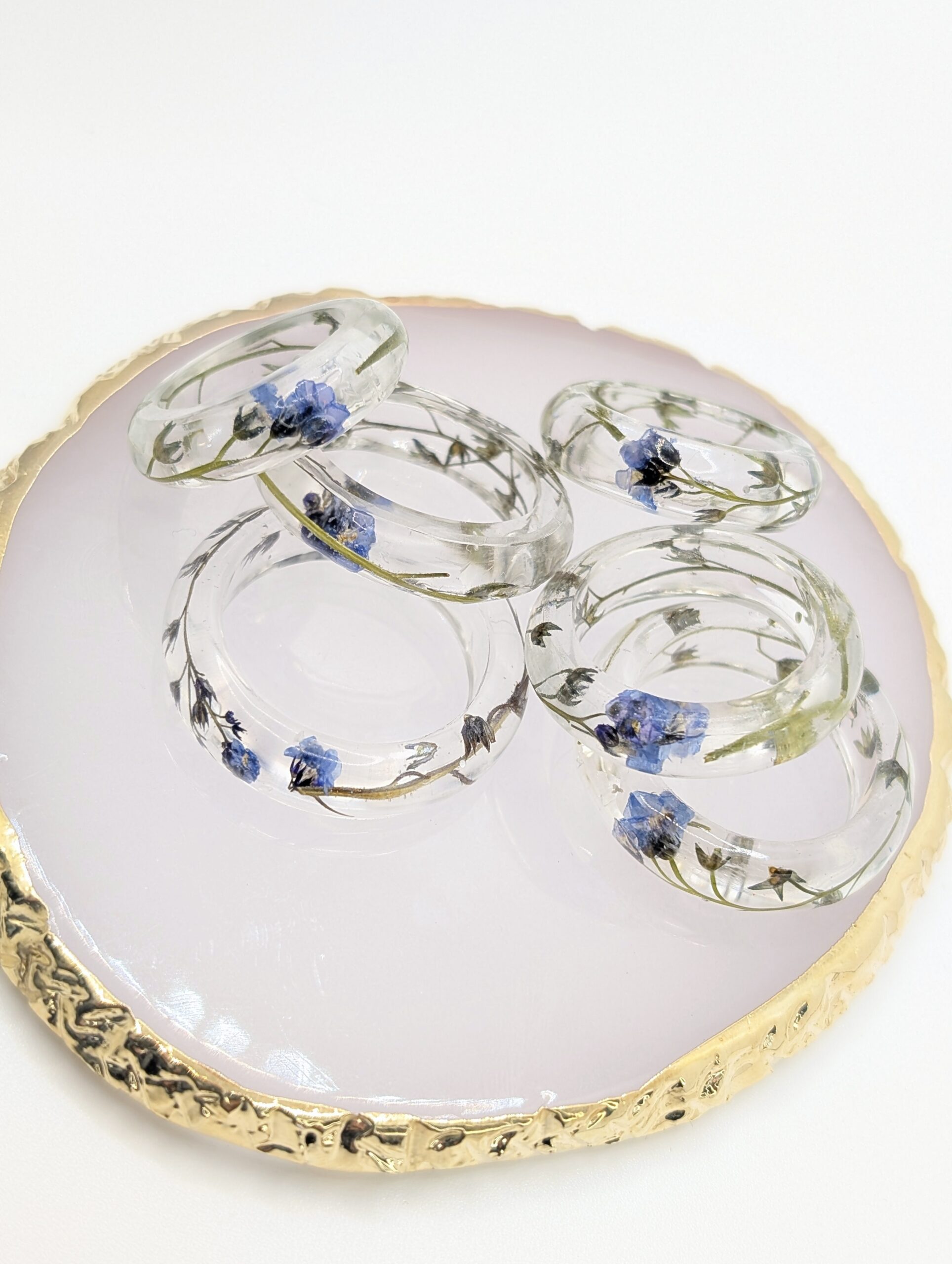 Minimalistyczny pierścionek z żywicy i polnych kwiatów